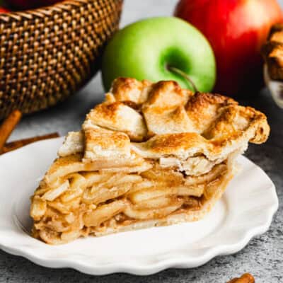 I'm so proud of this recipe and feel like it is the absolute perfect apple pie! It has the delicious flavor we love with tender cinnamon sugar apples and it also stays together when you serve it, ensuring everyone gets their share of filling and flaky crust. A truly perfect pie recipe is only as good as the crust, so be sure to start this one with our easy homemade pie crust! You wont regret making this all from scratch.