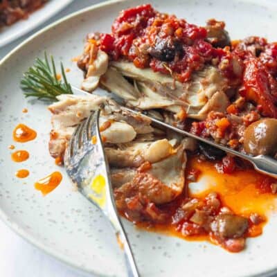 The flavors are intense, and the chicken should come out so tender that you don't need a knife to cut it. Using a typical Italian expression, “You can cut it with a breadstick,” meaning it should almost melt in your mouth.