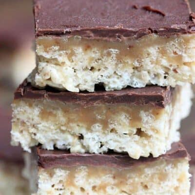 I LOVE rice krispie treats and these just take them to a whole new level. Love the caramel and chocolate – maybe a little too much.