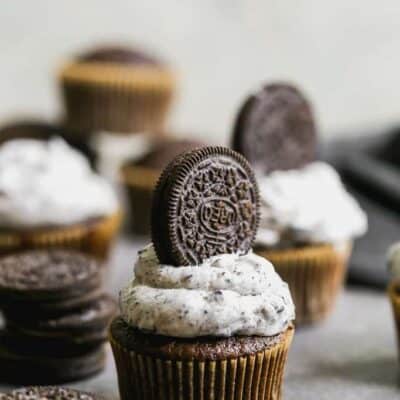 To Make Ahead: Unfrosted chocolate cupcakes will keep, covered, at room temperature or in the fridge for 2-3 days. Oreo frosting will keep in the fridge for 1-2 weeks.