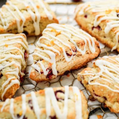 Cool baked scones on wire rack for at least 10 minutes before drizzling the glaze on top. Enjoy!