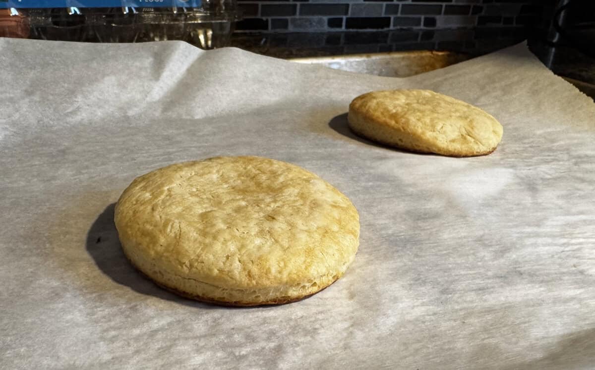 Bake and Serve: Place biscuits on a parchment-lined baking sheet and bake at 400°F for 10-12 minutes, until golden. Enjoy warm with butter and jam, sausage gravy, alongside soup, or even topped with strawberries and cream for a quick shortcake.