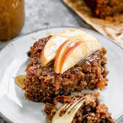 This cake was delicious perfection! Served it warm from the oven with a drizzle of caramel sauce and it was a cozy fall hug in a dish!
