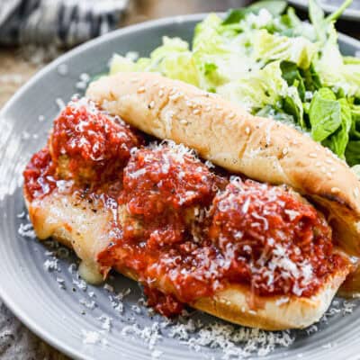 Anyone looking for a crowd-pleasing dinner recipe (no matter the age or size of the crowd) could confidently settle on Meatball Subs. I always double the recipe because the meatballs freeze great (raw or cooked), saving me so much time another day. Did I mention everyone LOVES these?
