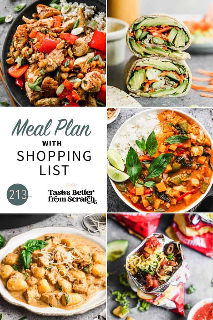 Using a weekly meal plan is the best way to cook healthier for your family and save money and time! This week's menu includes our popular Walking Tacos, Creamy Chicken & Gnocchi, Veggie Wrap, Red Curry, and Kung Pao Chicken.