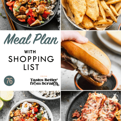 We’ve included the estimated cost per recipe and cost for the entire meal plan, making it even easier to budget and see exactly how much you’re saving when you cook from scratch and use a meal plan! You’ll also save money by dining out less often, avoiding impulse purchases, and wasting less food!