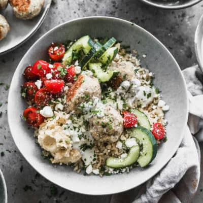 This may just be my favorite recipe from TBFS. And I’ve tried a lot. The meatballs are DELICIOUS. My whole family loves them so I usually do 1.5lbs of the turkey so we have leftovers. I add grated cucumber to my tzatziki and I use some mixed greens with a bit of balsamic and olive oil as well in the bowls. These 5 stars are for the meatballs alone!!!