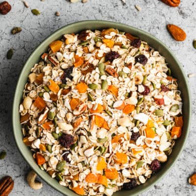 This homemade Muesli recipe is packed with oats, nuts, seeds, coconut, and dried fruit. Enjoy it with milk as cereal, sprinkled on yogurt, or use in overnight oats. It's a healthy breakfast that will leave you feeling energized and ready to tackle your day!