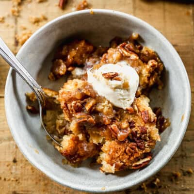 To Make Ahead: This pecan cobbler is best served immediately, but it can be kept covered in the fridge for up to 4-5 days.