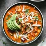 My love for this soup started when I was in college–I made it for my friends and everyone went nuts for it. You can control the heat level depending on who's at the table – mild salsa for the kids, spicy for the adults who want a kick. The best part? It tastes exponentially better the next day after all those spices have had time to mingle and get cozy together. I've been known to make a double batch just so I can enjoy it for lunch all week long. And don't forget that toppings are king: avocado, cheese, cilantro, and crushed tortilla chips and letting everyone customize their own bowl.