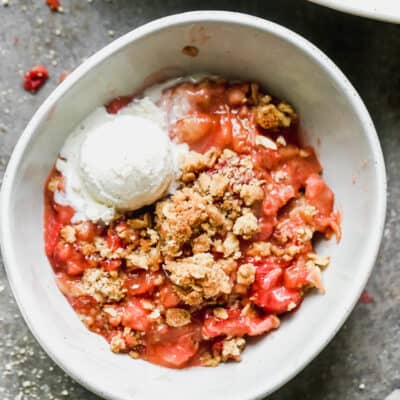 To Make Ahead: The strawberry rhubarb filling and oat topping can be made 1 day in advance, stored seperatly in the fridge.